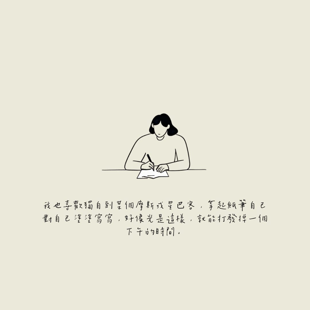 我也喜歡獨自到某個摩斯或星巴客,拿起紙筆自己對自己塗塗寫寫,好像光是這樣,就能打發掉一個下午的時間。沒有手機、沒有社群、沒有網路,甚至沒有人、沒有書,只有自己跟紙筆。這樣的時光,如今看來真的難以想像。以上這些難以想像的時光,大約分布在西元2000年至2007年之間。沒有iPhone的時代。